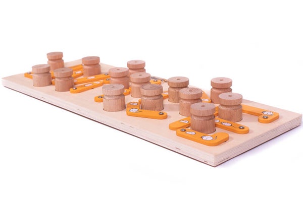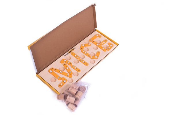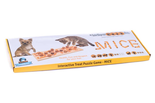 Traktaties zijn verborgen onder beweegbare oranje stukken die het woord MICE spellen. Om deze delen te verschuiven, moet je kat eerst houten cilinders omverwerpen - met extra traktaties erin voor een extra verrassing. Mice - hondenpuzzel speelgoed